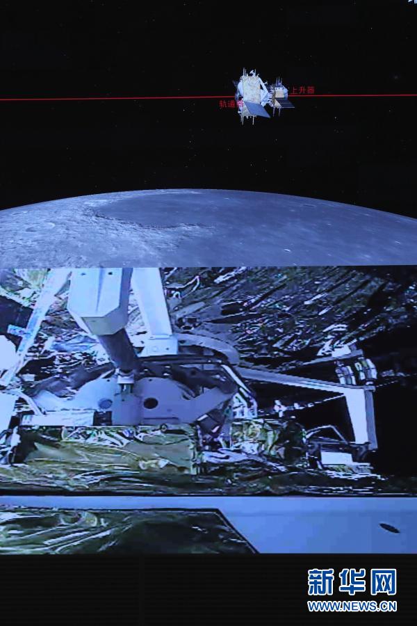 記者從國家航天局獲悉,12月6日5時42分,嫦娥五號上升器成功與軌道器返回器組合體交會對接,并于6時12分將月球樣品容器安全轉移至返回器中。這是我國航天器首次實現(xiàn)月球軌道交會對接。新華社記者 金立旺 攝