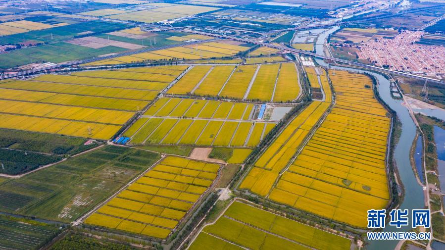 9月22日拍攝的河北省唐山市蘆臺經(jīng)濟開發(fā)區(qū)海北鎮(zhèn)的水稻田(無人機照片)。