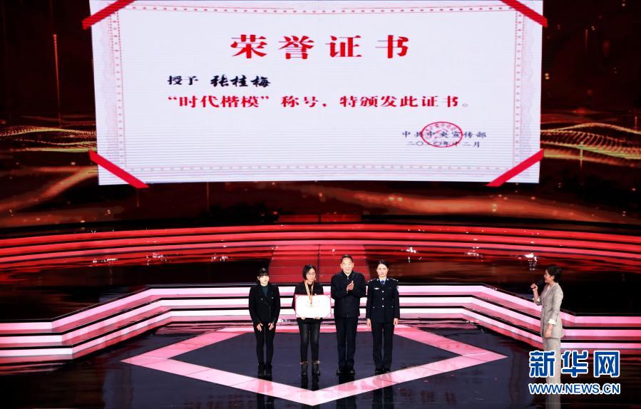 “時代楷?!卑l布儀式現場宣讀了《中共中央宣傳部關于授予張桂梅同志“時代楷?!狈Q號的決定》,播放了反映張桂梅同志先進事跡的短片。中央宣傳部負責同志為張桂梅頒發了“時代楷模”獎章和證書。全國婦聯、教育部、云南省委有關負責同志,當地教師學生和干部群眾代表等參加發布儀式。