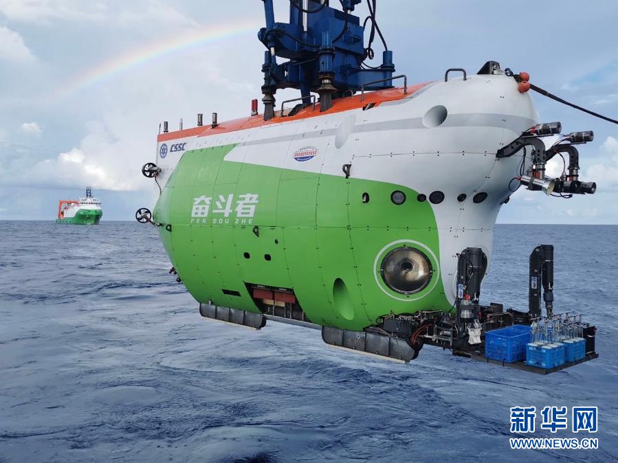11月28日8時30分許,創(chuàng)造了10909米中國載人深潛新紀(jì)錄的“奮斗者”號,完成第二階段海試,勝利返航。這是“奮斗者”號(資料照片)。新華社發(fā)(中國船舶集團(tuán)供圖)