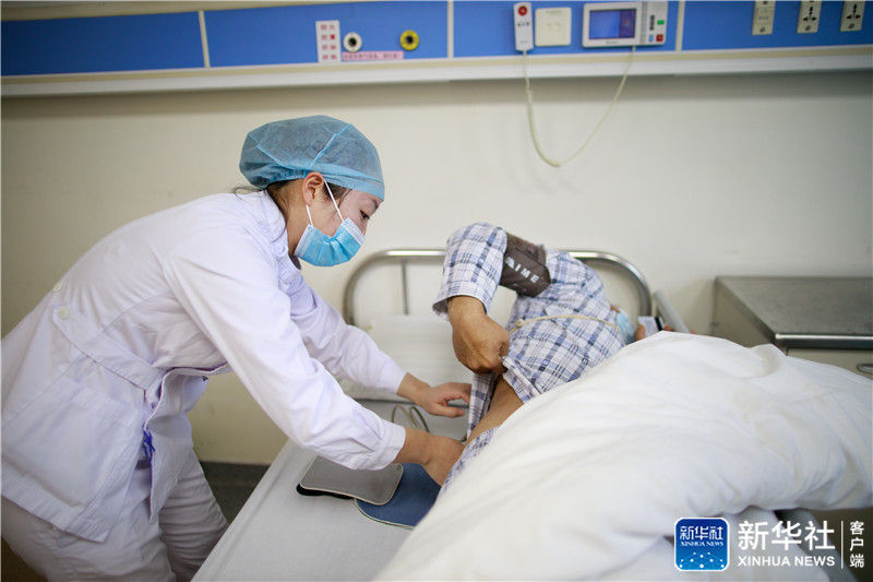 ↑12月17日,貴州醫科大學附屬醫院護士葉青(左)在骨科病房工作。新華社記者 劉續 攝