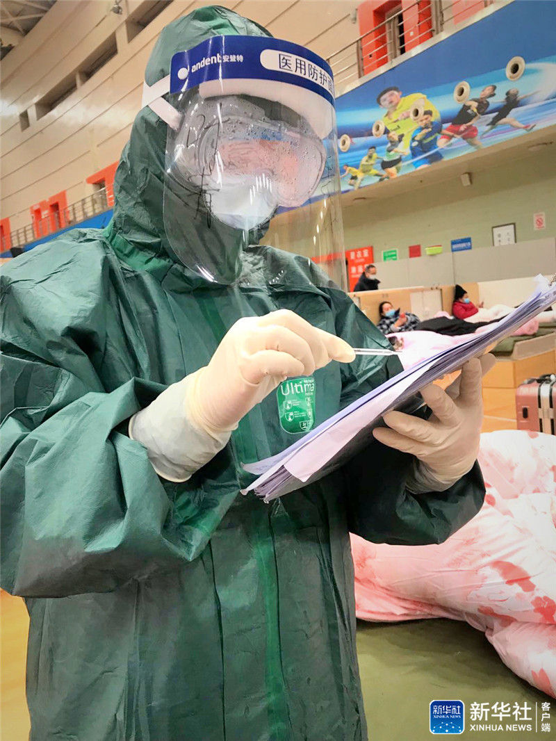 2月13日,葉青和同事們一起進入武漢體育中心方艙醫院收治病人,當天就收入院377名病人。“那個場景對于我來說一生都很震撼。當天部分病人情緒也很糟糕,有些抵觸,但到后面就完全信任我們,還主動關心我們。”