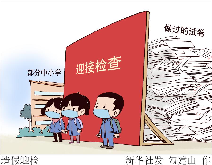 “明天學校迎接本學期檢查,所有做過的試卷都放在家里!”“檢查組要來,學校文化墻上再貼幾個標語”……進入12月后,部分中小學師生全力以赴迎檢,有的學校甚至停止正常的教育教學,反復叮囑孩子“藏好試卷”,造假迎檢。