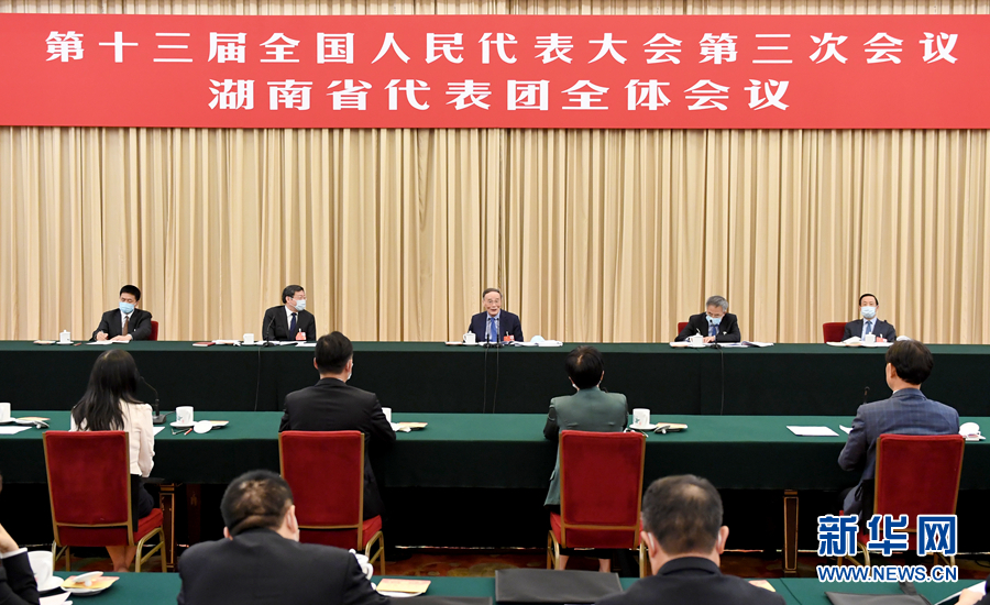 5月24日,國家副主席王岐山參加十三屆全國人大三次會議湖南代表團的審議。 新華社記者 岳月偉 攝