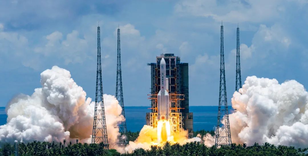 2020年7月23日,長征五號(hào)遙四運(yùn)載火箭在中國文昌航天發(fā)射場點(diǎn)火升空,實(shí)施我國首次火星探測任務(wù)(天問一號(hào)任務(wù))。新華社記者 才揚(yáng) 攝