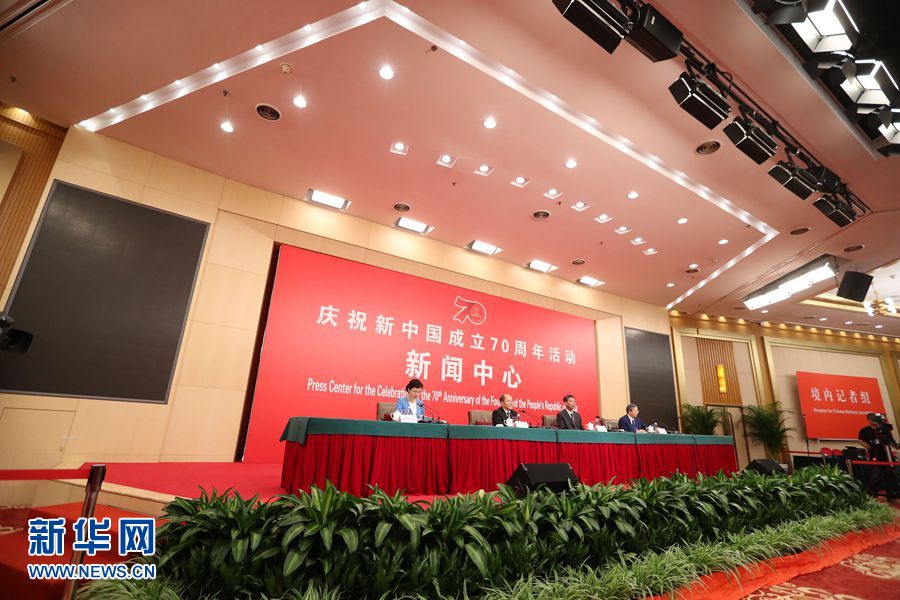 9月24日,慶祝中華人民共和國成立70周年活動新聞中心在北京梅地亞中心二層新聞發布廳舉辦第一場新聞發布會。圖為新聞發布會現場。新華網記者 陳競超 攝