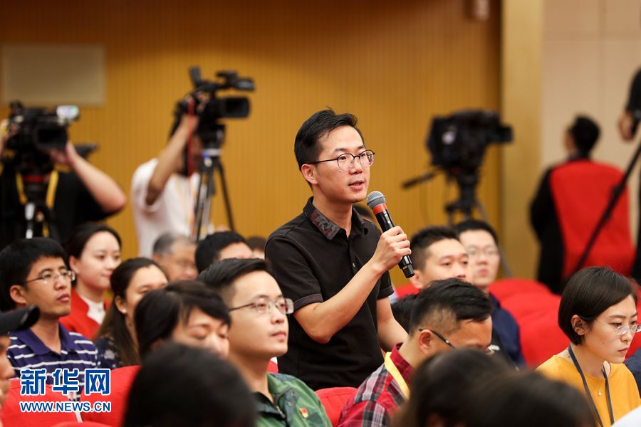 9月25日,慶祝中華人民共和國成立70周年活動新聞中心在北京梅地亞中心二層新聞發(fā)布廳舉辦第二場專題集體采訪活動。圖為媒體記者提問。新華網(wǎng)記者 焦鵬 攝