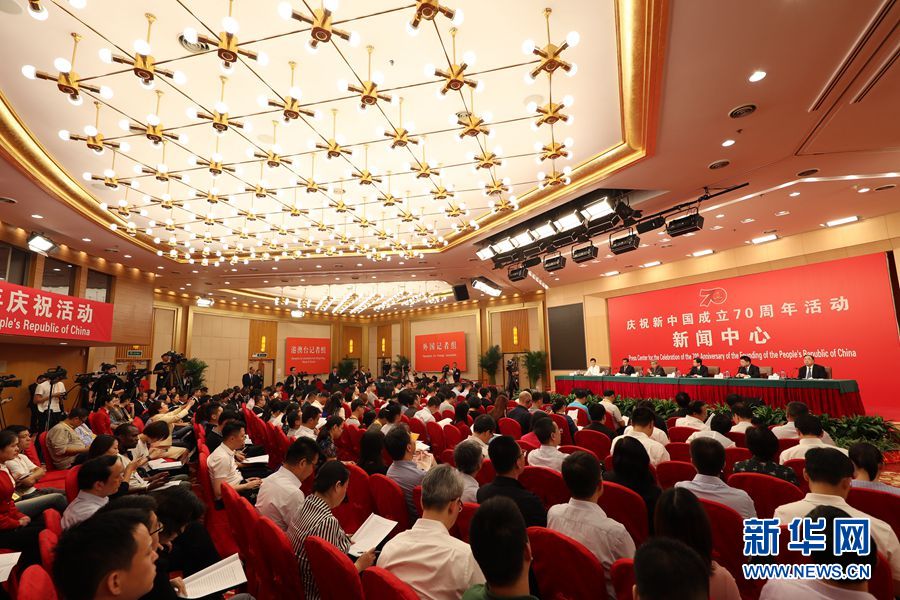 9月26日,慶祝中華人民共和國成立70周年活動新聞中心在北京梅地亞中心二層新聞發布廳舉辦第二場新聞發布會。圖為新聞發布會現場。新華網記者 郭小天 攝