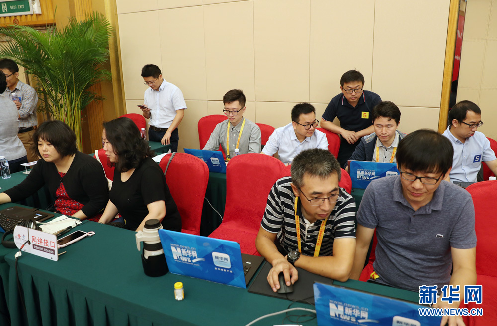 9月27日,慶祝中華人民共和國(guó)成立70周年活動(dòng)新聞中心在梅地亞中心二層新聞發(fā)布廳舉辦第三場(chǎng)新聞發(fā)布會(huì),中央農(nóng)村工作領(lǐng)導(dǎo)小組辦公室主任、農(nóng)業(yè)農(nóng)村部部長(zhǎng)韓長(zhǎng)賦,國(guó)務(wù)院扶貧開發(fā)領(lǐng)導(dǎo)小組辦公室主任劉永富介紹全面建成小康社會(huì),扎實(shí)推進(jìn)脫貧攻堅(jiān)和鄉(xiāng)村振興,并回答記者提問。圖為新華網(wǎng)對(duì)發(fā)布會(huì)進(jìn)行現(xiàn)場(chǎng)直播。新華網(wǎng) 陳杰 攝