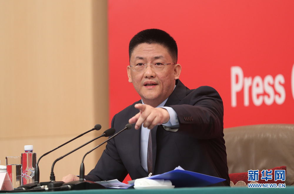 9月27日,慶祝中華人民共和國成立70周年活動新聞中心在梅地亞中心二層新聞發布廳舉辦第三場新聞發布會,中央農村工作領導小組辦公室主任、農業農村部部長韓長賦,國務院扶貧開發領導小組辦公室主任劉永富介紹全面建成小康社會,扎實推進脫貧攻堅和鄉村振興,并回答記者提問。圖為發布會主持人,慶祝中華人民共和國成立70周年活動新聞中心負責人趙江濤。新華網 陳杰 攝