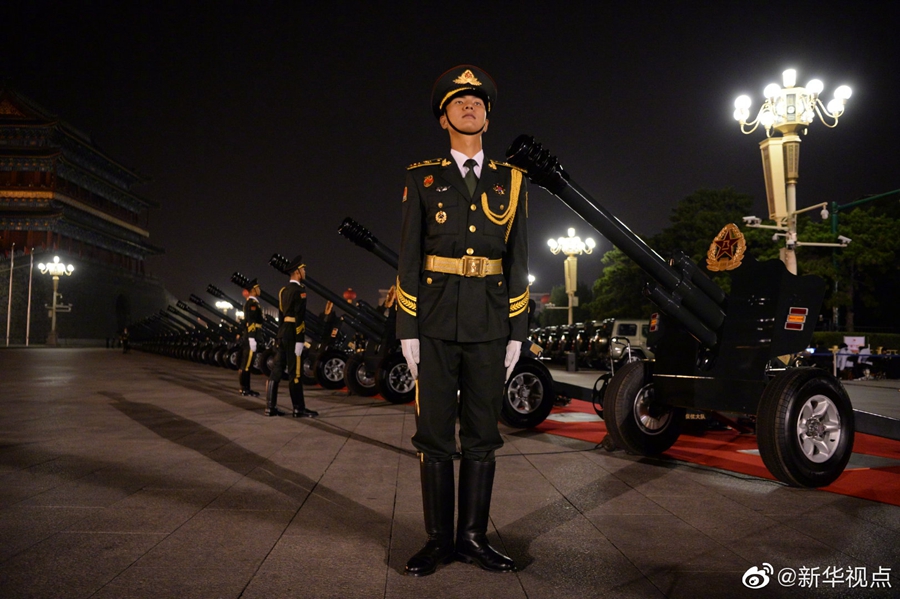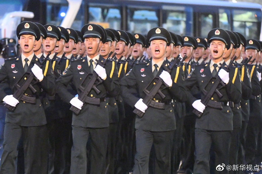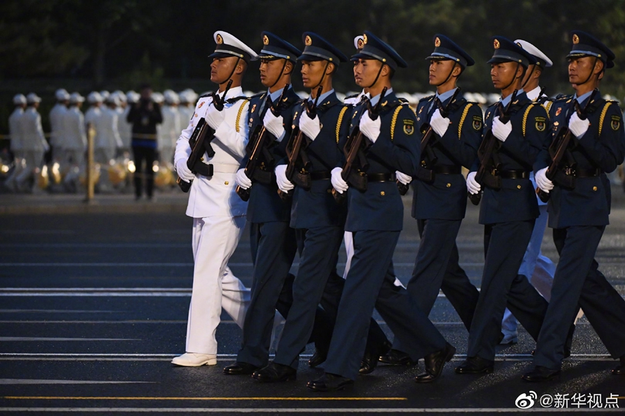 晨曦微露,裝點一新的東長安街上,三軍列陣,鐵甲生輝,參加國慶70周年閱兵的全體受閱官兵集結完畢,雄姿英發、精神抖擻。由人民解放軍、武警部隊和民兵預備役部隊約15000名官兵、580臺(套)裝備組成的15個徒步方隊、32個裝備方隊,沿東長安街綿延向東約2公里;陸、海、空航空兵160余架戰機,組成12個空中梯隊,在北京周邊多個機場整裝待發。?