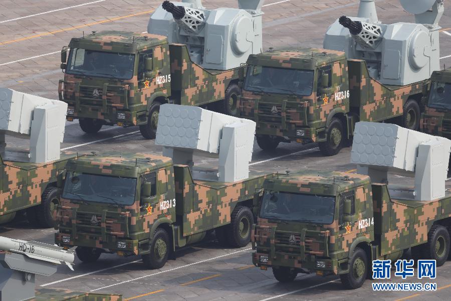10月1日上午,慶祝中華人民共和國(guó)成立70周年大會(huì)在北京天安門(mén)廣場(chǎng)隆重舉行。這是艦載防空武器方隊(duì)。新華社記者 江宏景 攝