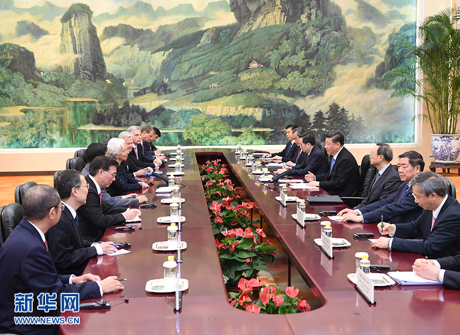 4月24日,國(guó)家主席習(xí)近平在北京人民大會(huì)堂會(huì)見(jiàn)國(guó)際貨幣基金組織總裁拉加德。 新華社記者 饒愛(ài)民 攝