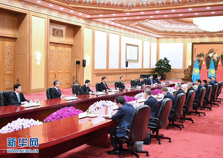 4月28日,國家主席習近平在北京人民大會堂會見哈薩克斯坦首任總統納扎爾巴耶夫。 新華社記者 謝環馳 攝
