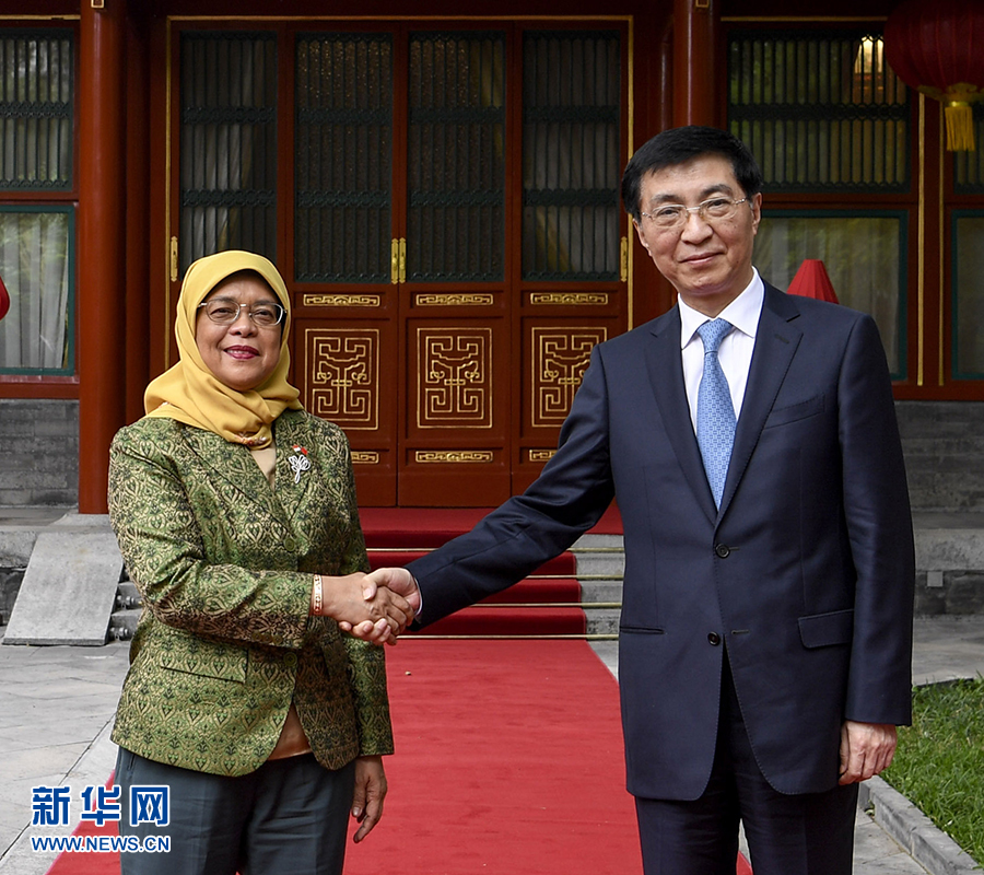 新華社北京5月15日電(記者鄭明達)中共中央政治局常委、中央書記處書記王滬寧15日在釣魚臺國賓館會見新加坡總統哈莉瑪。