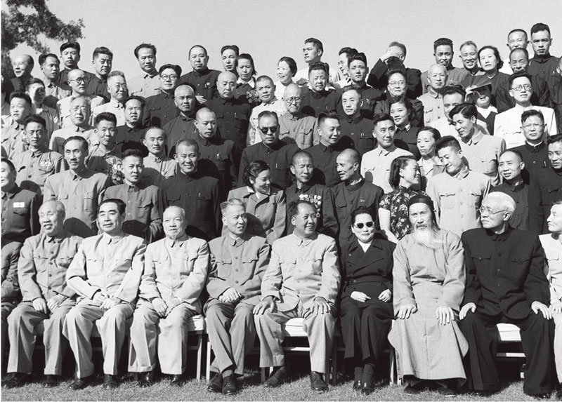中華人民共和國第一屆全國人民代表大會第一次會議全體代表于1954年9月21日合影。毛澤東主席和代表們在一起。前排左起:董必武、周恩來、李濟深、劉少奇、毛澤東、宋慶齡、張瀾、林伯渠。 新華社稿 侯波/攝