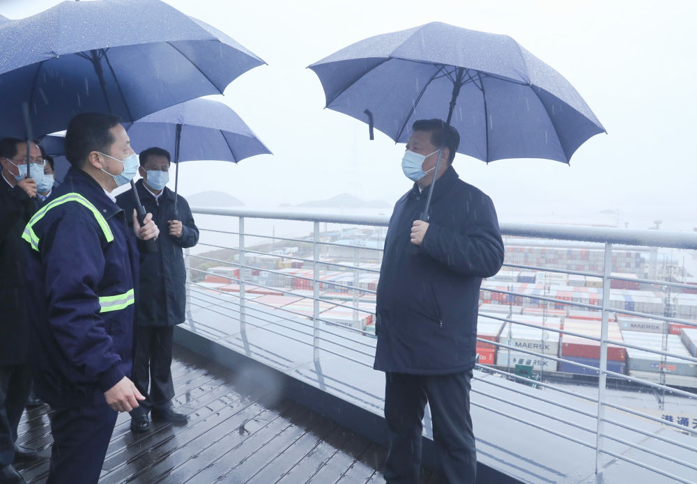 從新華社發(fā)出的現(xiàn)場(chǎng)照片看,總書記在寧波舟山港穿山港區(qū)碼頭上沒(méi)有佩戴口罩。↓↓↓