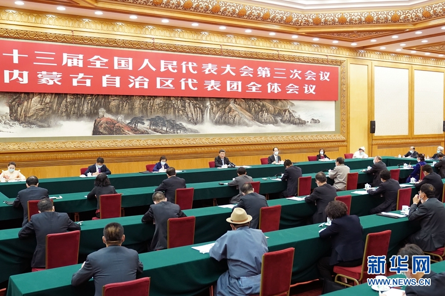 5月22日,中共中央總書記、國家主席、中央軍委主席習近平參加十三屆全國人大三次會議內蒙古代表團的審議。 新華社記者 黃敬文 攝