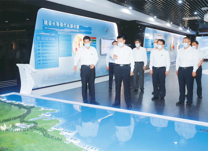 2020年7月22日至24日,中共中央總書記、國家主席、中央軍委主席習近平在吉林省考察。這是7月23日下午,習近平考察長春新區(qū)規(guī)劃展覽館,了解新區(qū)規(guī)劃建設(shè)情況。 新華社記者 王曄/攝