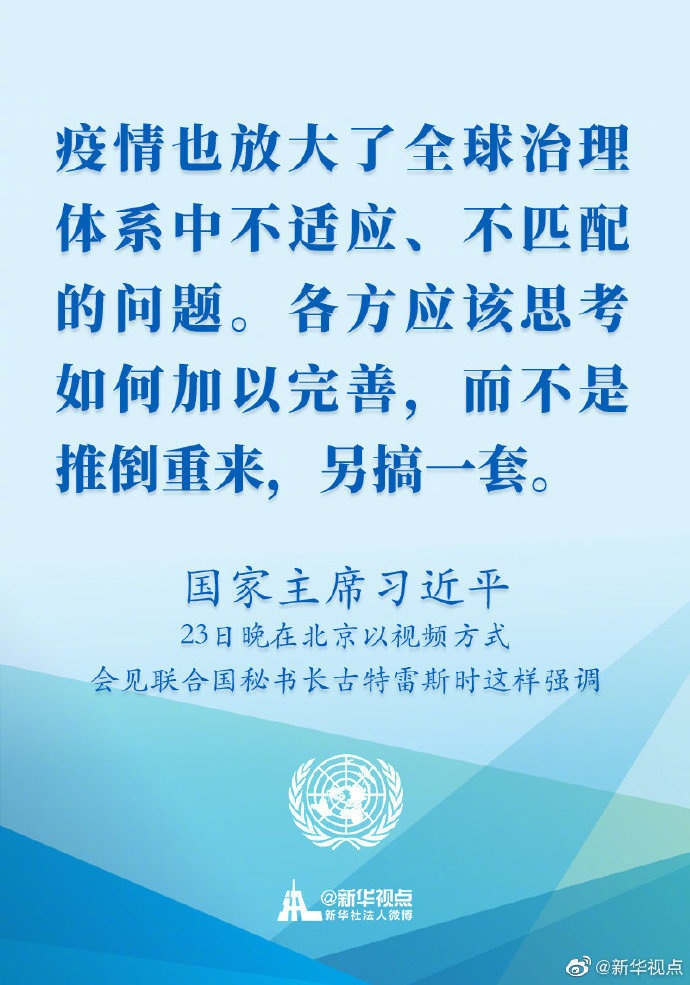 國家主席習(xí)近平23日晚在北京以視頻方式會(huì)見聯(lián)合國秘書長古特雷斯時(shí)講話的金句