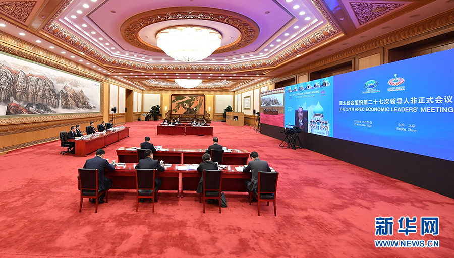 11月20日晚,國家主席習近平在北京以視頻方式出席亞太經合組織第二十七次領導人非正式會議并發表重要講話。 新華社記者 李響 攝