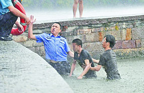 京城學子西湖冒雨救人 記者巧遇記錄全程