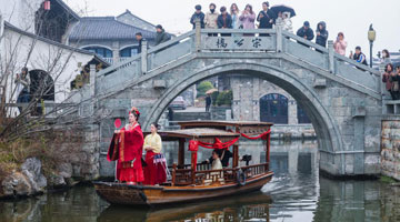1月21日,游客在豫园九曲桥上赏灯。