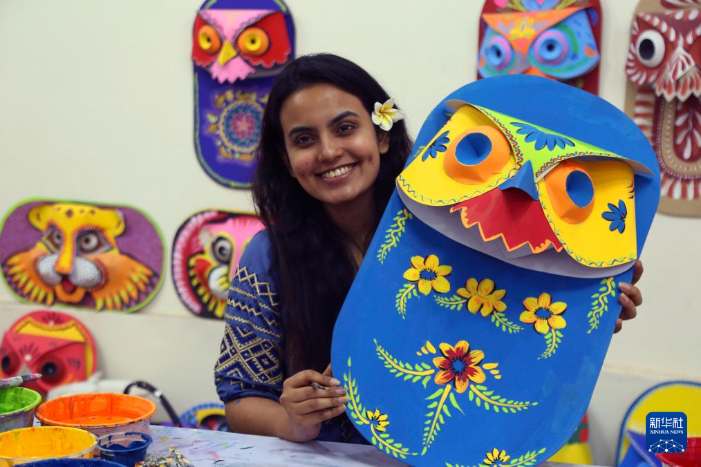 4月7日,在孟加拉国首都达卡,达卡大学的学生展示孟历新年庆祝活动所需的工艺品。
