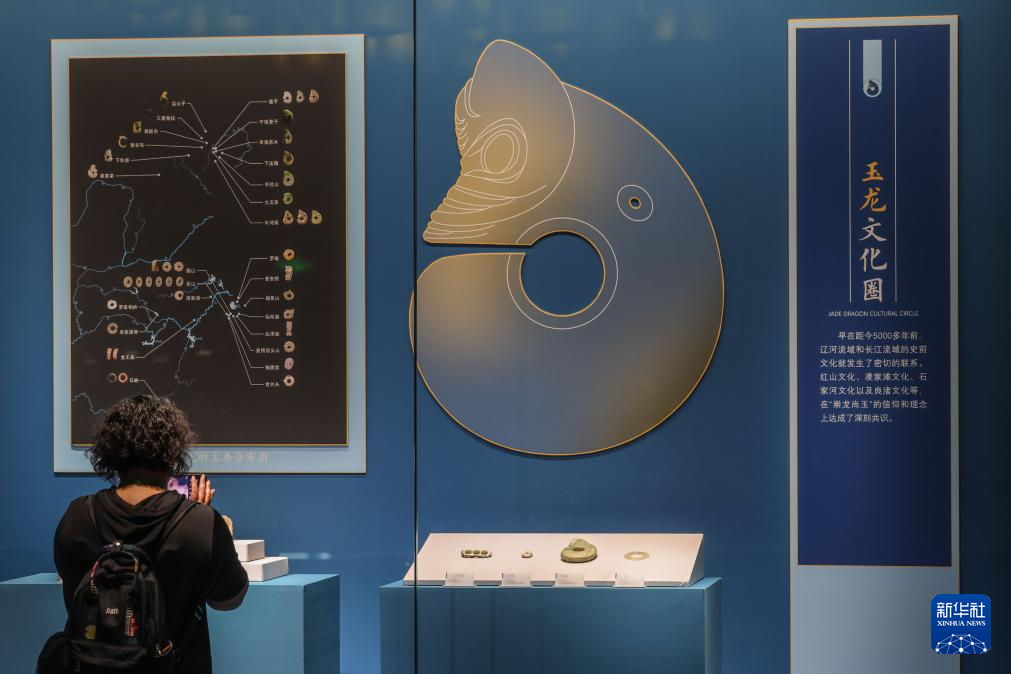 6月8日在“文明之光——红山·良渚与中华文明”主题展览上拍摄的红山文化玉猪龙。