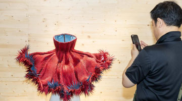 这是在位于北京十里河的工作室内展示的冀豫团队的宫毯作品(6月27日摄)。
