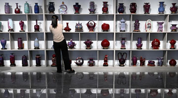 7月9日,观众在北京参观展出作品。