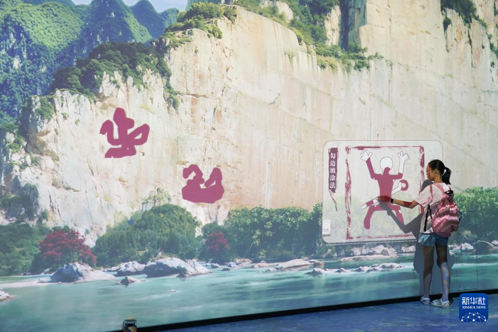 8月24日,参观者在位于南宁的广西民族博物馆体验“骆越遗珍——左江花山岩画数字化展”互动项目。