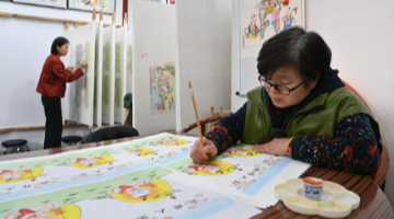 近日,山东省巨野县的工笔画绘画师忙着绘制以牡丹画为代表的工笔画作品,供应春节节前文化消费市场。近年来,山东省巨野县大力发展工笔画产业,全县有绘画专业镇4个、绘画专业村50个,书画产业从业人员2万余人,年创作工笔画作品超过100万件,作品远销40多个国家和地区。