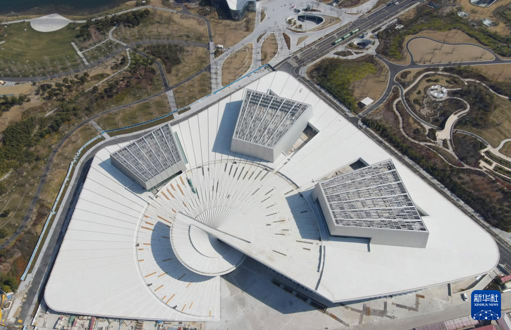 2月13日俯瞰位于世博文化公园内的上海大歌剧院(无人机照片)。