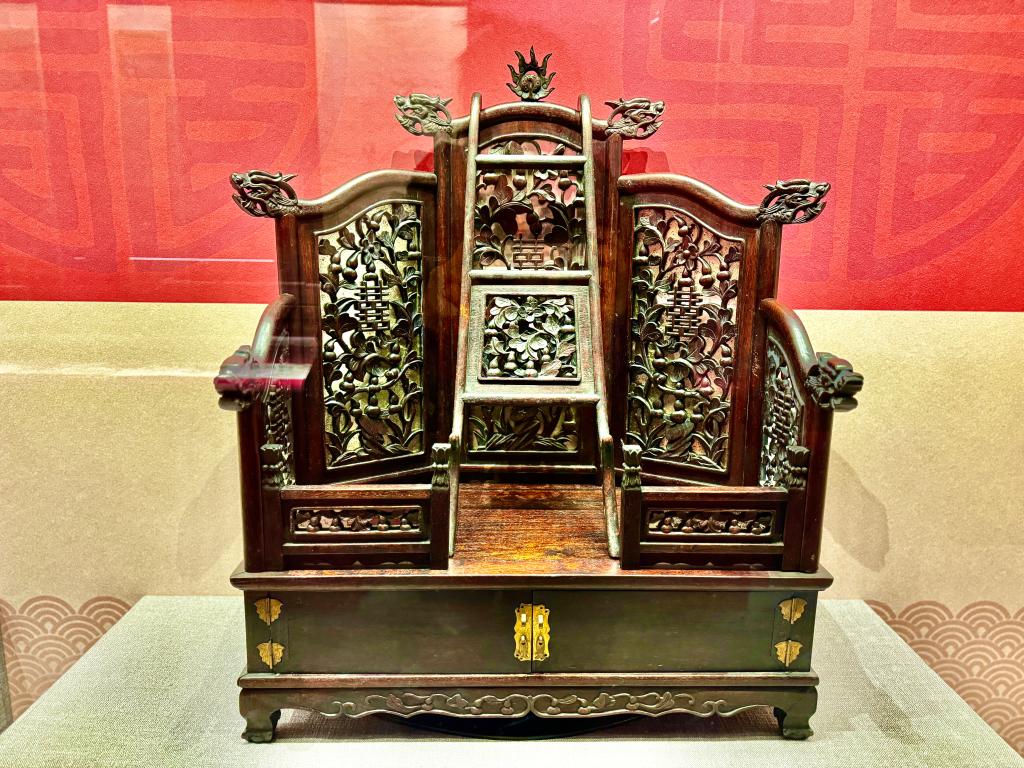 清硬木雕花喜字梳妆台。(沈阳故宫博物院供图)