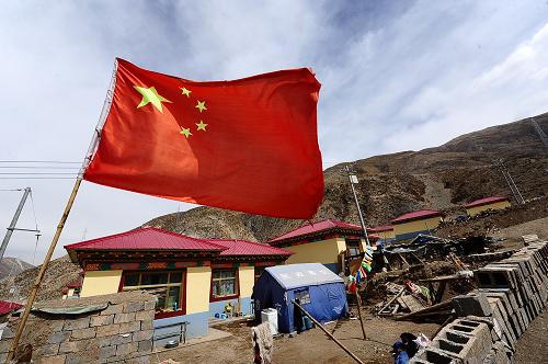 組圖:青海省玉樹軍分區(qū)官兵與孤兒學校師生一起跳藏族鍋莊舞