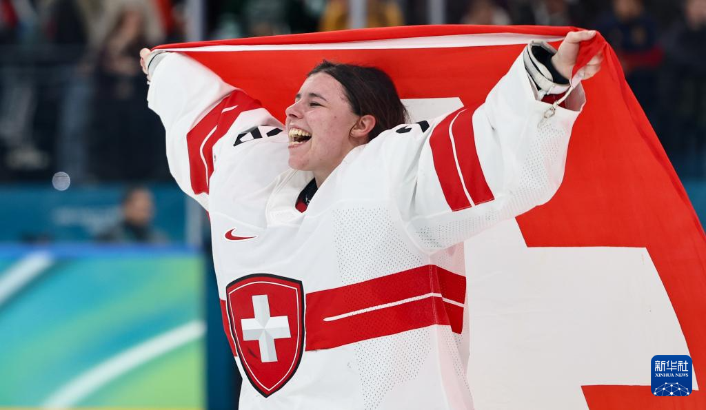 2月19日,瑞士队球员阿林娜·米勒在赛后庆祝。