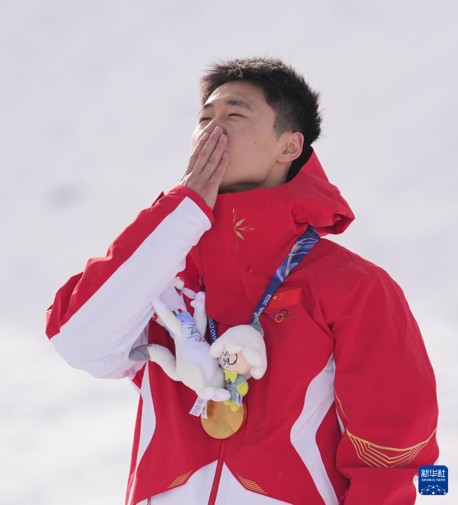 2月20日,冠军中国选手王心迪在颁奖仪式上。