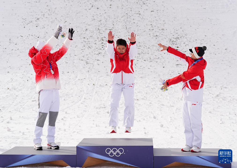 当地时间2月20日,在意大利利维尼奥举行的米兰-科尔蒂纳冬奥会自由式滑雪男子空中技巧决赛中,中国选手王心迪和李天马分获冠军和季军。