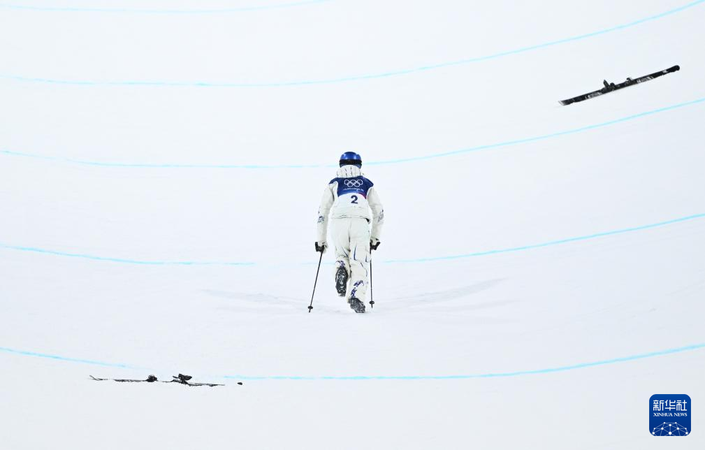 2月19日,中国选手谷爱凌在比赛中摔倒后站起。她晋级决赛。