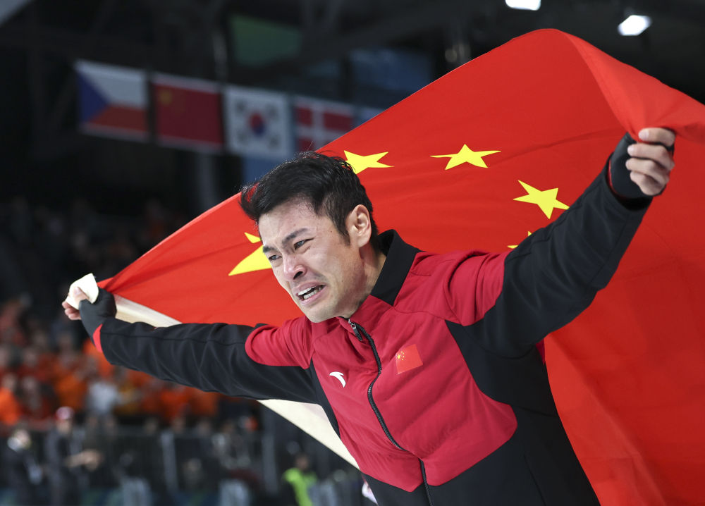当地时间2月19日,中国选手宁忠岩夺得米兰-科尔蒂纳冬奥会速度滑冰男子1500米冠军。