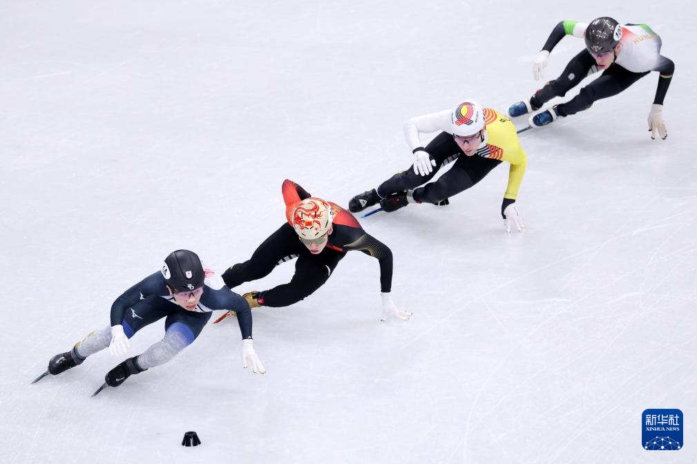 2月20日,中国队选手张柏浩、刘少昂、孙龙、林孝埈(从左至右)在比赛中。