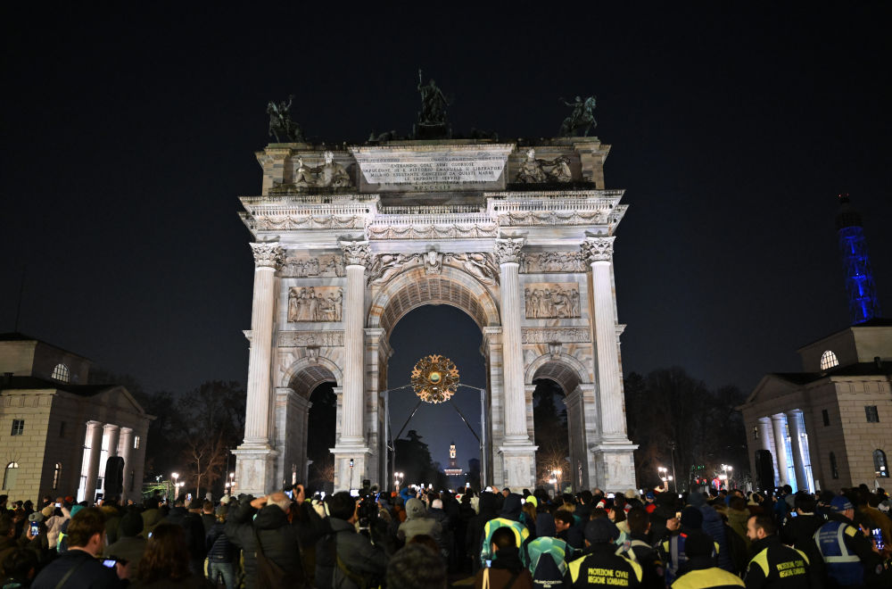 ↑这是在米兰和平拱门拍摄的主火炬被熄灭。