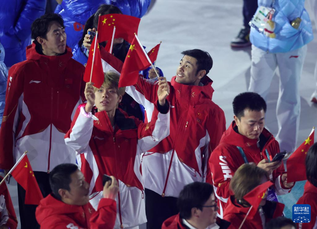 2月22日,中国体育代表团旗手苏翊鸣在闭幕式上入场。