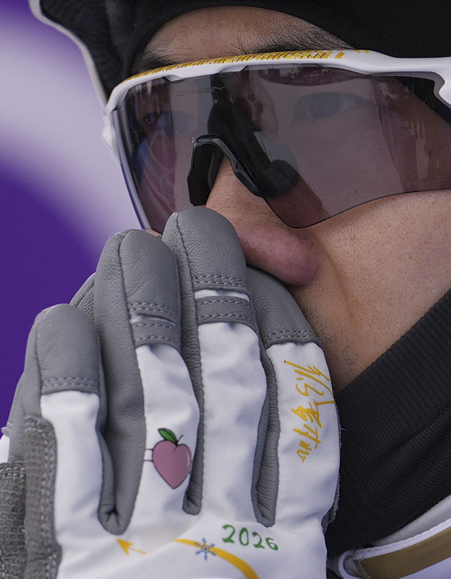 2月20日,王心迪在自由式滑雪男子空中技巧决赛中等待成绩。新华社记者 胡超 摄