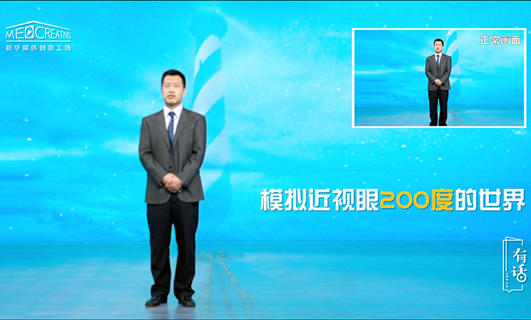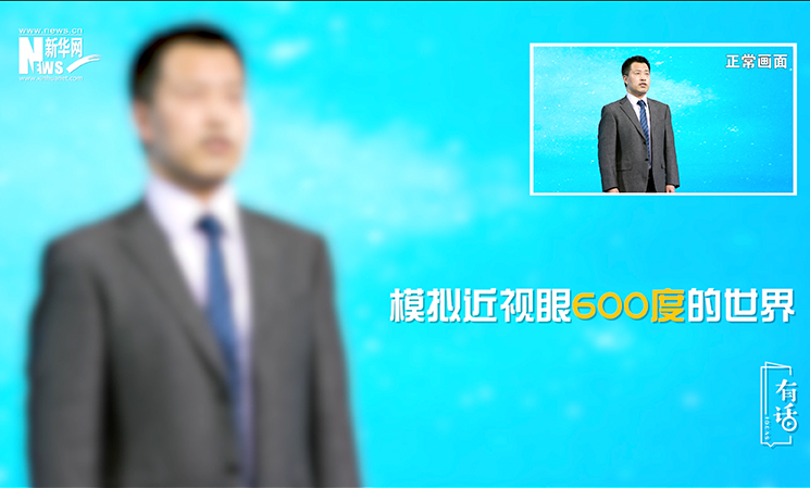 說到這,很多人就會說,近視眼戴副眼鏡就行了,對生活的影響真的這么大嗎?真的會有那么可怕的后果嗎?在這里,我給大家模擬一下,不同視力程度的人看到的世界。我們正常的眼睛看到的世界是清晰明亮的,正如您現在看到鏡頭里的我是清晰的,我臉上的表情你能夠看到。到了200度近視的患者眼里,世界就已經開始變得模糊了。這個時候我在說話,我的眼睛在看著你,你還是能看得到的。在這個階段如果我們能夠采取一個合理的矯正方式,是有機會維持并且把我們的視力恢復到一個正常的范圍。