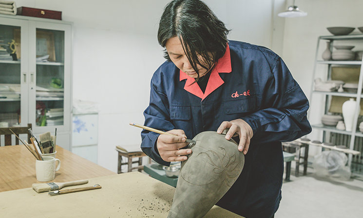 定瓷產業的發展,主要取決于年輕人才的輸入;然而定瓷之所以被列入非遺,很重要的一個原因就是它的從業人員越來越少,面臨著斷代的危機。河北省曲陽陳氏定窯瓷業有限公司成立時,我是第一批工人,和我同時被錄用的有11個人,到現在只剩下了我一個。作為一門傳統的手藝要學精、學好,沒有十年、八年的工夫根本做不到;同時它又是個力氣活,你看著挺新鮮、挺好玩的,一個動作真的讓你重復幾十萬遍,首先就要克服心理上的寂寞感。所以,只有有信念的人、真正喜歡的人,才能真正的堅持下去。慶幸的是,隨著國家的發展、物質積累越來越豐厚,人們不斷地探尋著精神層面的滿足感,一些有擔當的年輕人開始通過勞動創造實現自我價值。這是我在十幾年前無法想象的。時尚和傳統不是對立的,如今傳統文化的魅力正在吸引著一批又一批有擔當的年輕人傳承并創新著當代的新時尚。
