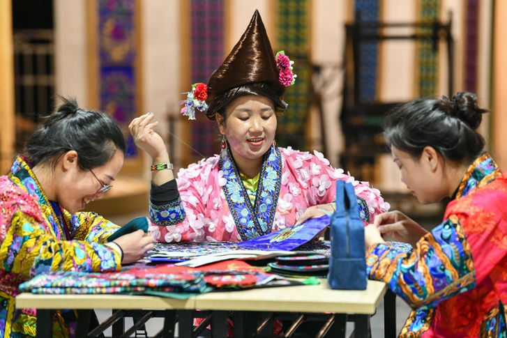 高興之余,我也面臨新挑戰。面對苗繡傳承、傳播青黃不接的窘境,我意識到自己有責任和義務把苗繡等苗族文化傳承下去、傳播出去。我想,我一個人的力量太小,把技藝傳給姐妹們也只能影響幾十、幾百人,如果學校、社會都參與進來,我們下一代就會有更多的熱情和意識主動去學習、傳承民族文化。
