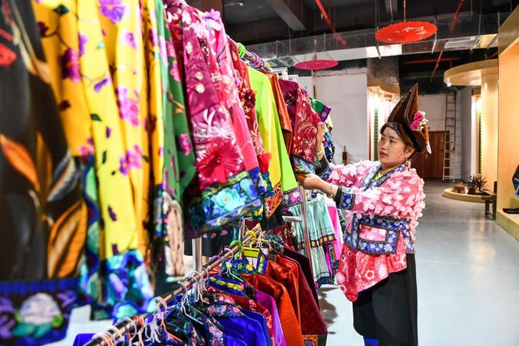 伴隨產品銷路漸好,還在外面打工的姐妹們也聞訊返鄉,40戶人家陸陸續續買了繡花機,有的辦起了家庭作坊,有的也建了廠。村里已然形成苗繡一條街,家鄉苗繡逐步走出大山。