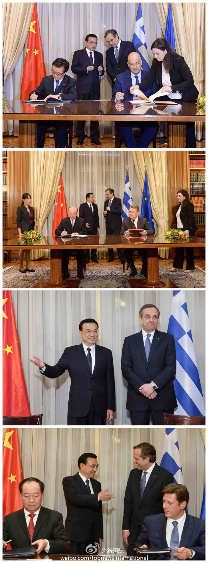 ????新華網(wǎng)北京6月20日電 據(jù)新華社“新國際”微博,報道當?shù)貢r間19日下午,國務院總理李克強與希臘總理薩馬拉斯舉行會談后,兩國總理共同見證了有關雙邊文化、經(jīng)貿(mào)、投資、海洋、防災、基礎設施建設等領域合作文件的簽署。
